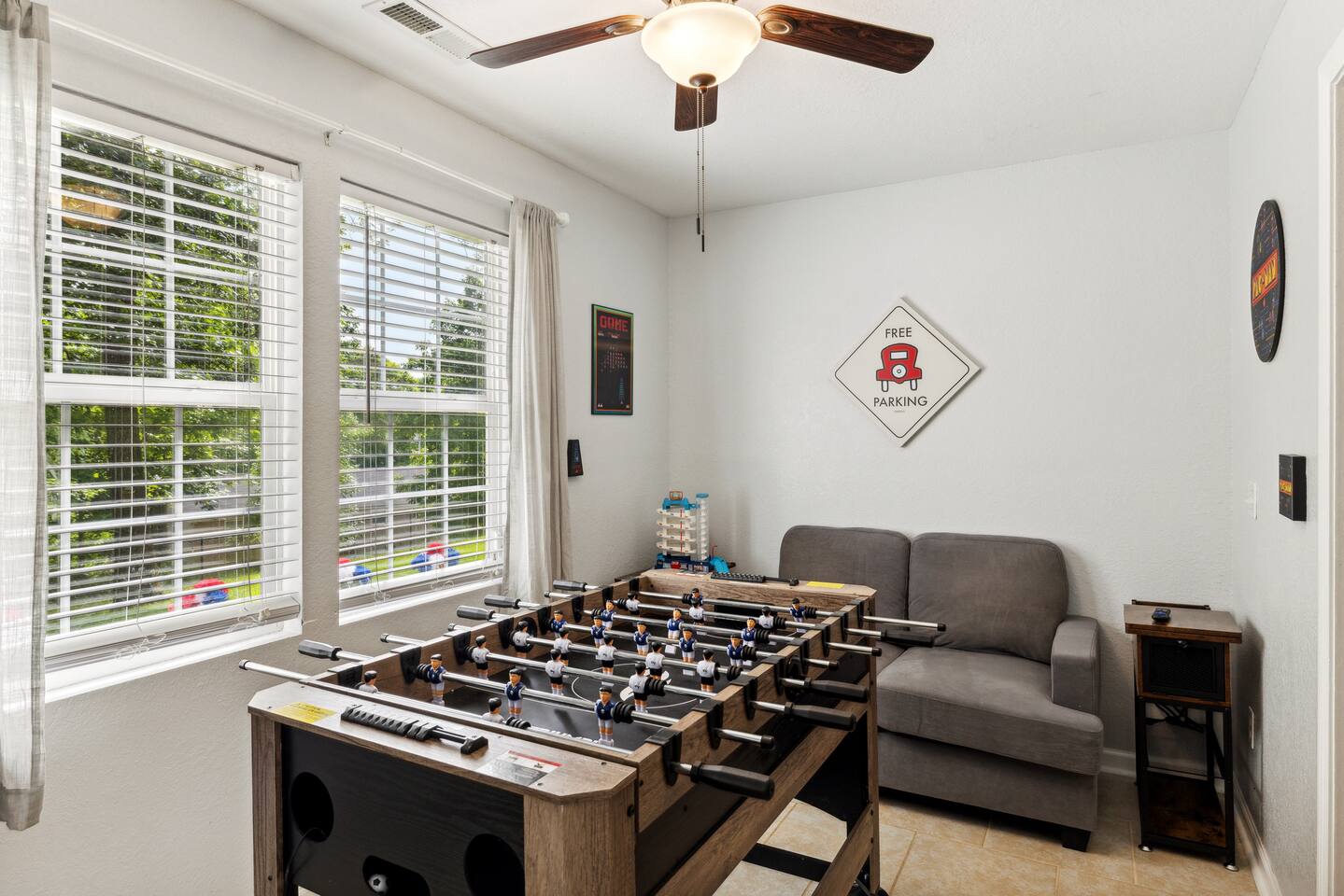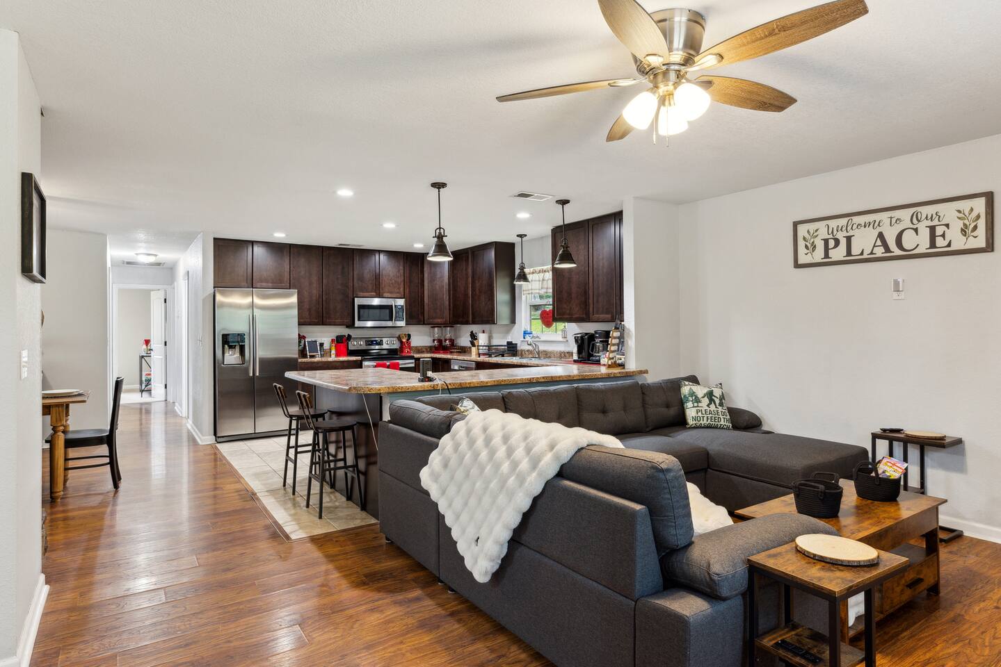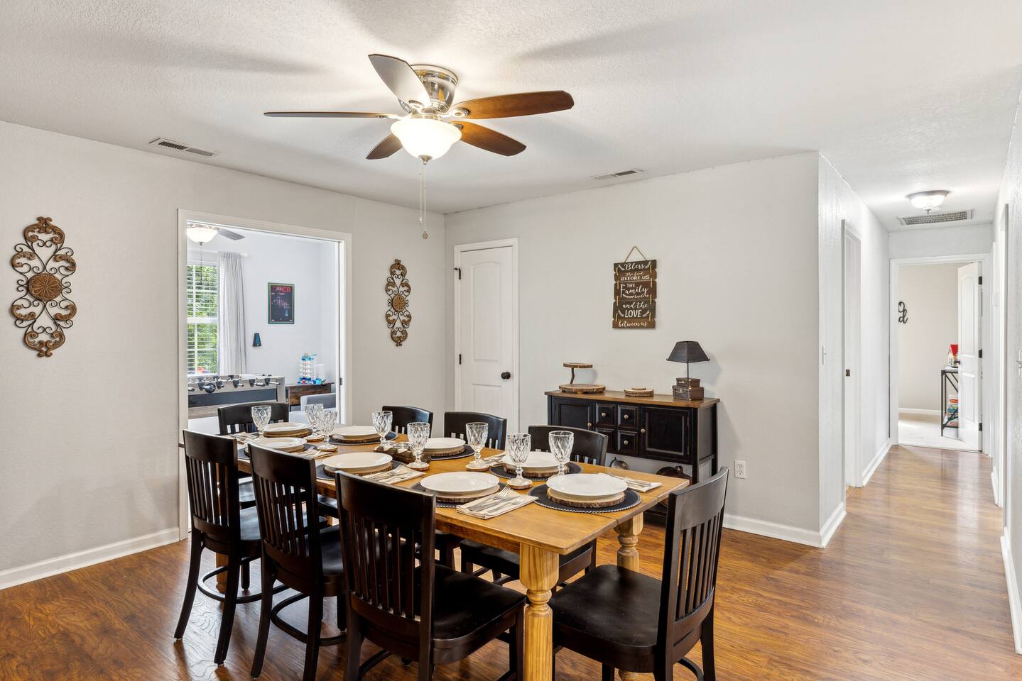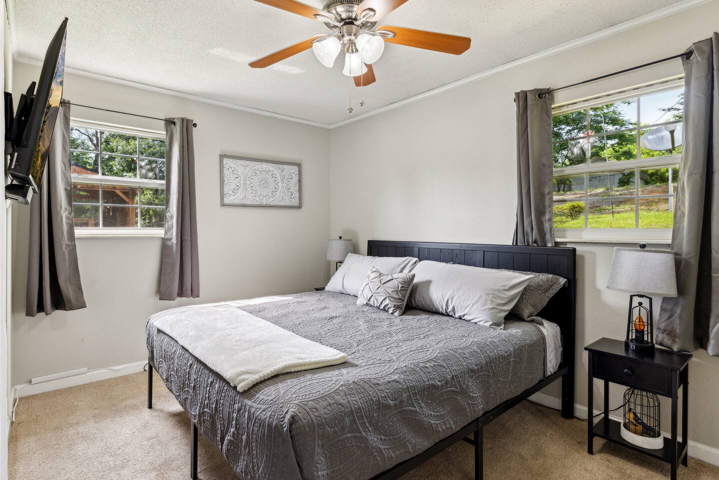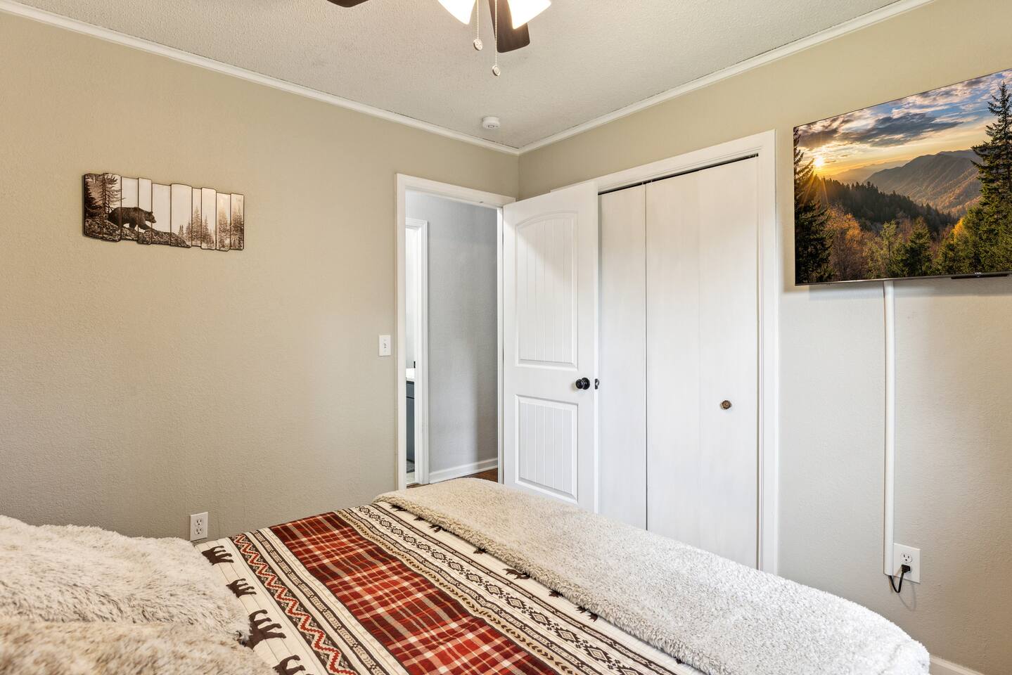 Smoky Mountain Cozy Cottage - Family-Friendly Cabin with Game Room, Tiki Bar, Pool, Hot Tub About this space • Bedrooms: King, Queen, Twin-over-Full Bunk, Sleeper Sofa • Amenities: Scenic Views, Tiki Bar, 7 Smart TVs, Gas Fireplace, Game Room • Location: 2.7 miles to Dollywood, 4 miles to Pigeon Forge Parkway, 12 miles to Great Smoky National Park • Internet: Xfinity High-Speed Wi-Fi Welcome to Smoky Mountain Cozy Cottage, a charming, single-level cabin tucked away in a quiet cul-de-sac just minutes from Dollywood. With easy, no-step access and spacious entryways, our home is designed with accessibility in mind. Situated on a full acre of land surrounded by trees, the cabin offers a tranquil escape while still being close enough to hear the Dollywood Express and catch glimpses of fireworks from the Tiki Bar. The Space • Our cozy cabin sleeps up to 8 guests and features: • Master Bedroom: King bed with en suite, 55” Smart TV • Bedroom 2: Queen bed, 55” Smart TV • Bedroom 3: Twin-over-Full Bunk Bed, board games, 55” Smart TV • Living Room: Sleeper sofa with sheets and blankets for extra guests o Equipped with 65” Smart TV, Popcorn Maker and more • Bathrooms: Full stocked with towels, soap, shampoo, conditioner, body wash, and other essentials • Spacious kitchen equipped with new appliances, including an air fryer, crockpot, two coffee makers, and more • Dining room with fireplace, dining table set for 8 plus additional seating at the counter • High chair attachment and kids’ dishes available • Complimentary coffee, sugar, and creamers provided Entertainment • 7 Smart TVs, including outdoor TVs at the Tiki Bar • Game Room with arcade games (Pac-Man, Galaga, Dig Dug), foosball table, and HDMI hookup for your own console • Board games, cards, checkers, and chess for family fun • Outdoor Living • Relax by the gas fireplace • Tiki Bar: 55” Smart TV, seating for 8, fridge/freezer • Pool: Heated pool (open March - October), seating for 12, pool lights • Hot Tub with seating for 7 open year round • Gas Grill: Includes rotisserie and griddle insert Guest Access • Check-In: Contactless via electronic keypad • Enjoy full access to the cabin, including the Tiki Bar, game room, pool, and backyard areas Additional Information • Roads & Access: Flat driveway and easy-to-navigate roads • Internet & Cell Service: High-speed Xfinity Wi-Fi provided • No Smoking/Vaping: Smoking permitted at the Tiki Bar or designated outdoor areas • Pets: Up to 2 dogs are allowed, with pet fee. We ask that the dogs be crated when unattended and left alone at the home. • Age Requirement: Guests must be 21+ (except for children with their parents) Whether you’re here for adventure, relaxation, or quality family time, Smoky Mountain Cozy Cottage offers the perfect setting for your next getaway. We look forward to hosting you!