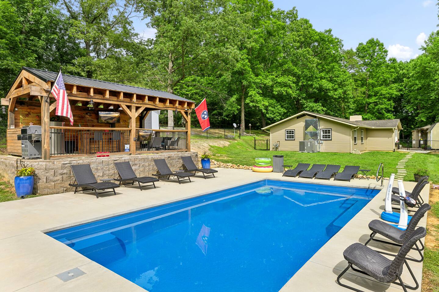 Smoky Mountain Secluded Acre of land with Pool and Tiki Bar
